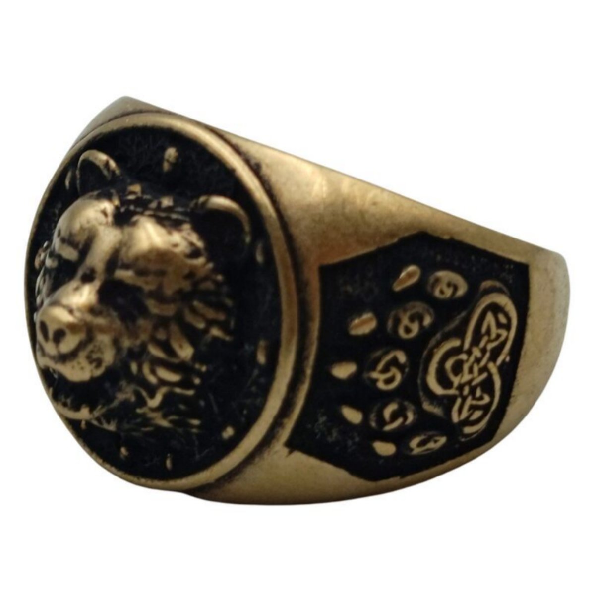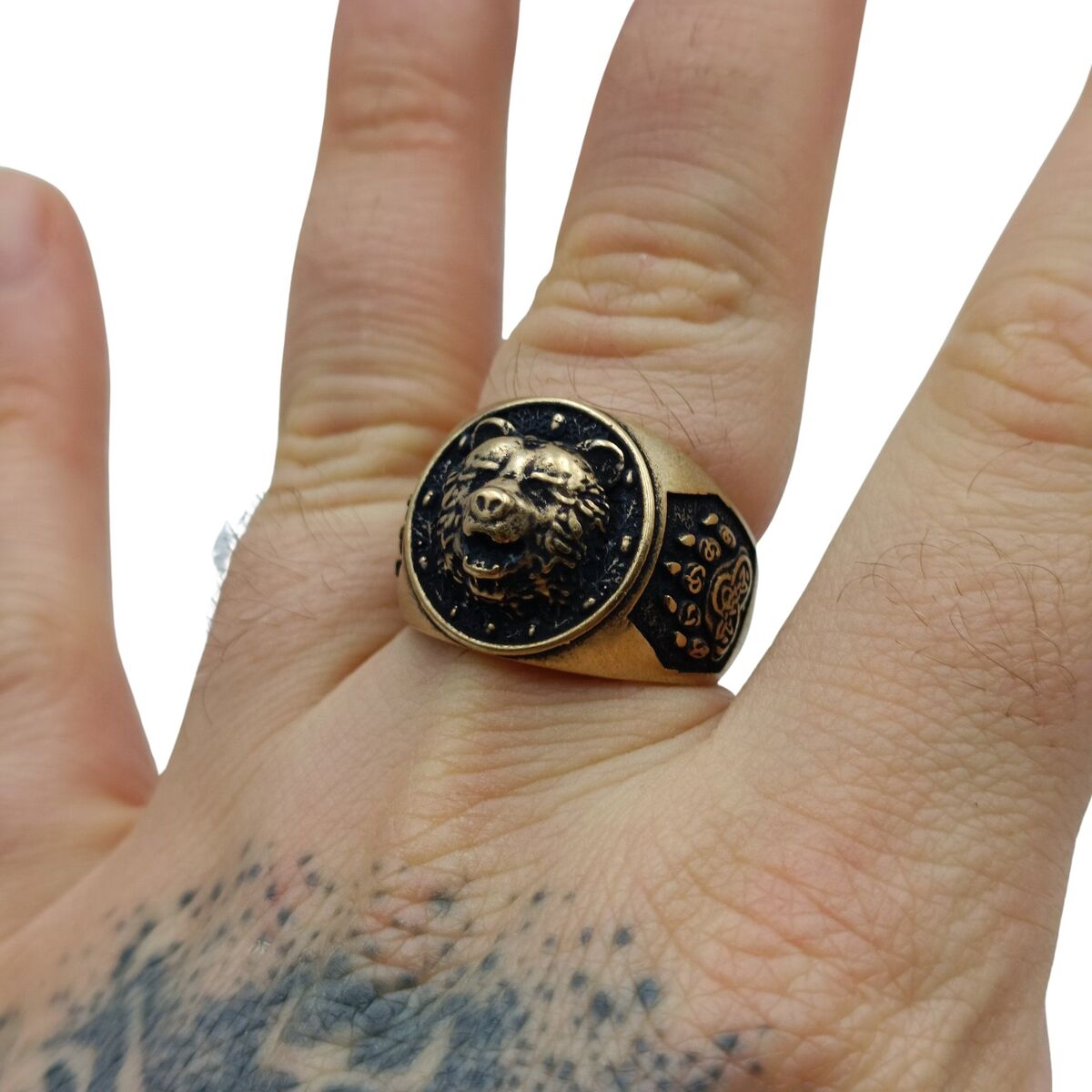 Ведмідь є не лише символом першопредка людини, але й влади воїнів та королівської міці. Оберіть цей перстень з бронзи, щоб носити з собою магію дикого лісу та могутність ведмежого духу. З цим перстнем Ви зможете примножити свою впевненість, долати будь-які життєві виклики і завжди матимете при собі могутнього захисника ведмежого духу.