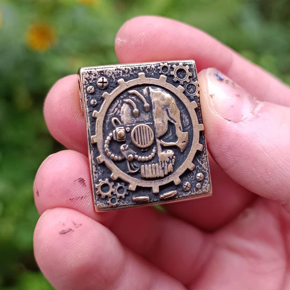 Замовте молле кліпсу "Адептус Механікус" з бронзи вже сьогодні та додайте до своєї колекції цей аксесуар, завдяки якому Ви зможете показати свою віру у Бога - машин Омніссію.