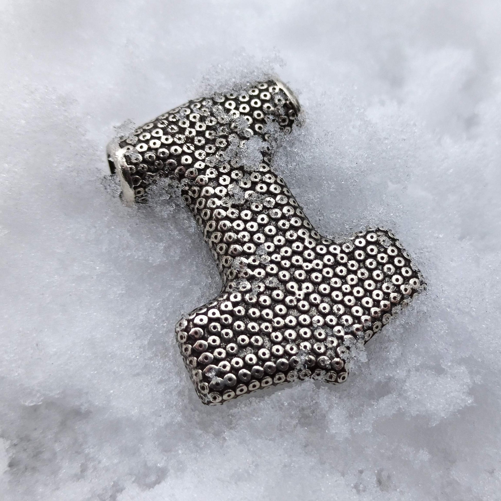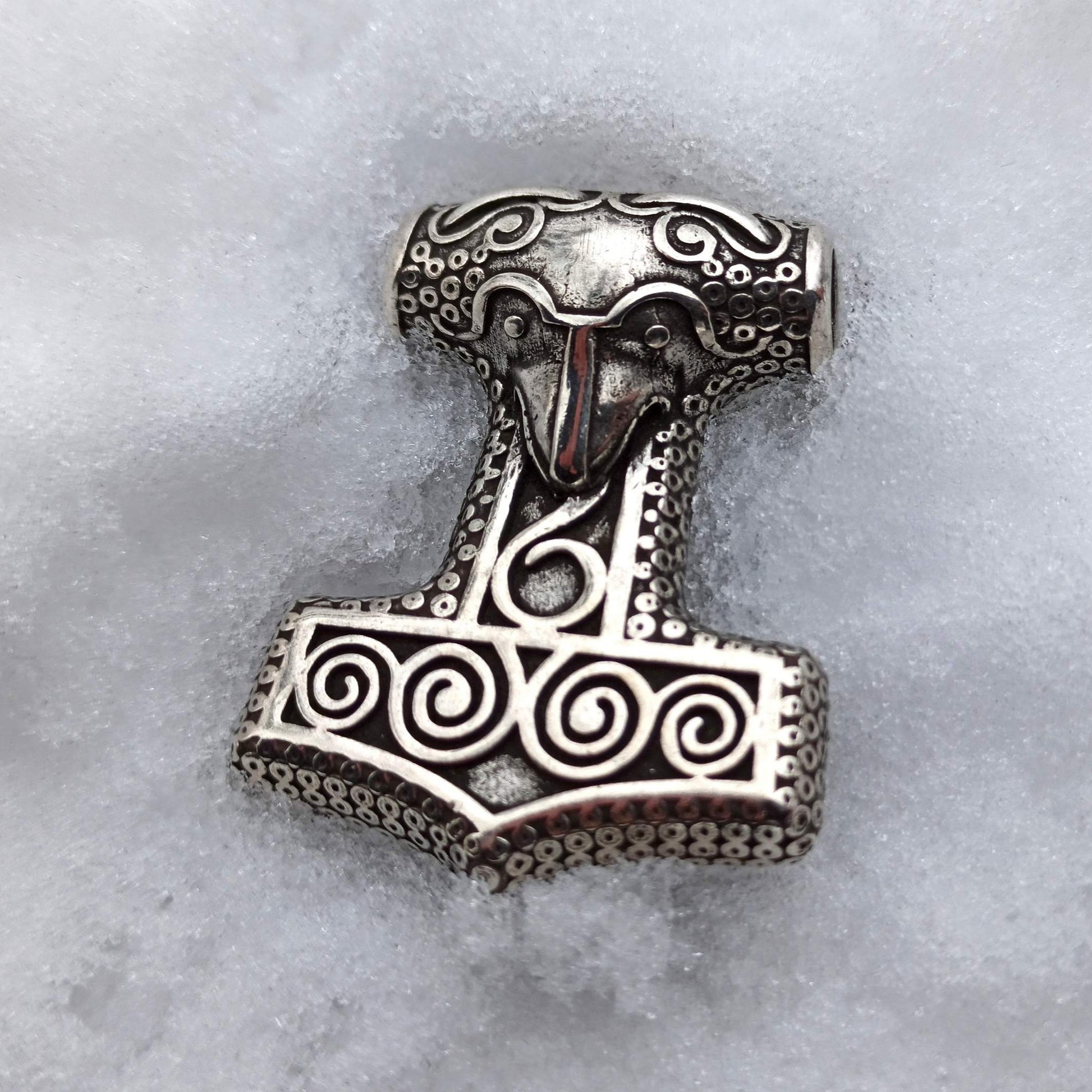 Ця ексклюзивна підвіска Мйольнір знайдена в Сконе виготовлена методом ручного лиття . Слава символу Мйольнір відома від давнини до сучасності. У скандинавській міфології Мйольнір — це назва знаменитого Молота Тора. В епоху вікінгів багато людей носили символ як амулет, щоб захистити себе від ворогів. За допомогою цього магічного інструменту Тора вдалося захистити місто Асгард, руйнуючи все на своєму шляху. Таким чином, він символізує силу, відродження і нескінченну земну міць.