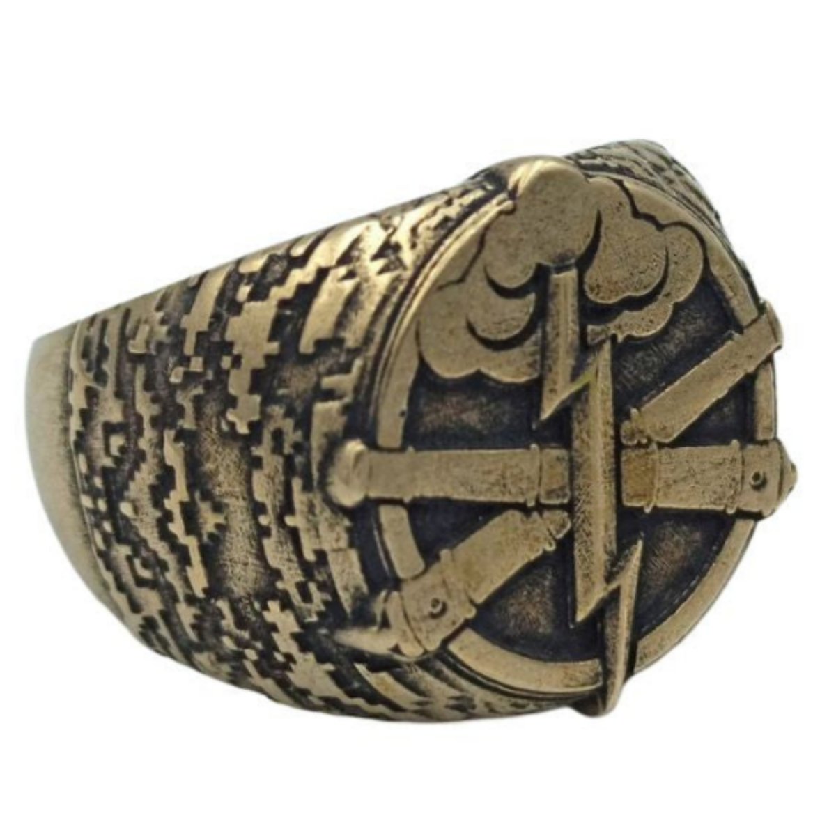 Каблучка виготовлена з італійської бронзи або зі срібла 925 методом ручного лиття. Ця прикраса створена з високою майстерністю та турботою про деталі, щоб надати йому неперевершений характер та естетичність. Емблема Ракетних військ та артилерії України, здобута з натхненням і пристроєм, ретельно вигравірована на поверхні перстня. Вона привносить яскравий і виразний зміст, що символізує силу та значення цього важливого військового підрозділу.