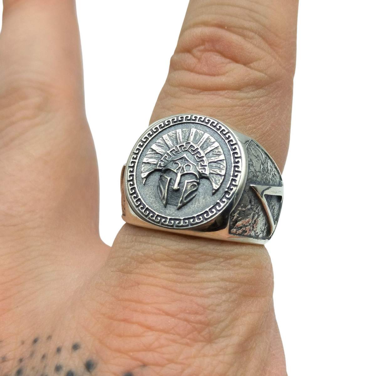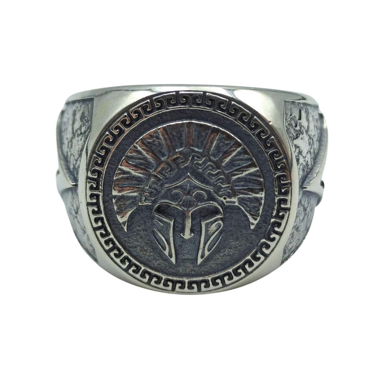 Розгляньте цей ексклюзивний перстень з глибоким символом, який допомагає Вам захист великих воїнів. Носіння цього перстня допоможе Вам досягти впевненого стану розуму і тіла, наче Ви були навчені з дитинства стати могутнім воїном. Цей шляхетний перстень з печаткою зі спартанським шоломом виготовлений методом ручного лиття з італійської бронзи або срібла 925. Центральна частина цього благородного перстня майстерно прикрашена символом спартанського шолома, який символізує гідність, мужність і захист. На обох профілях перстня зображений символ Лямбда (Λ) з написом "Молон Лабе",що означає «Прийди і візьми», відомий як гасло Спарти здавна.